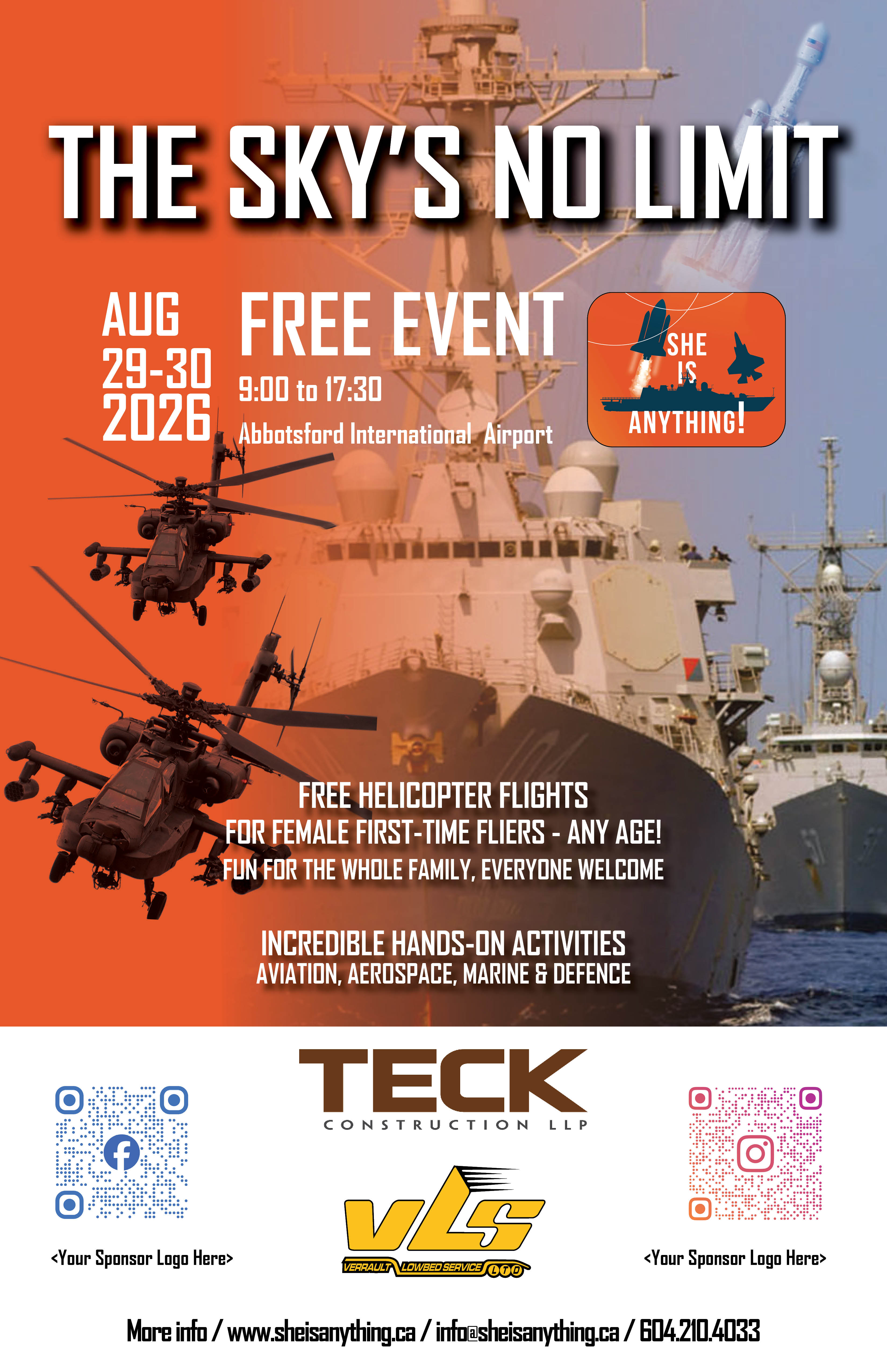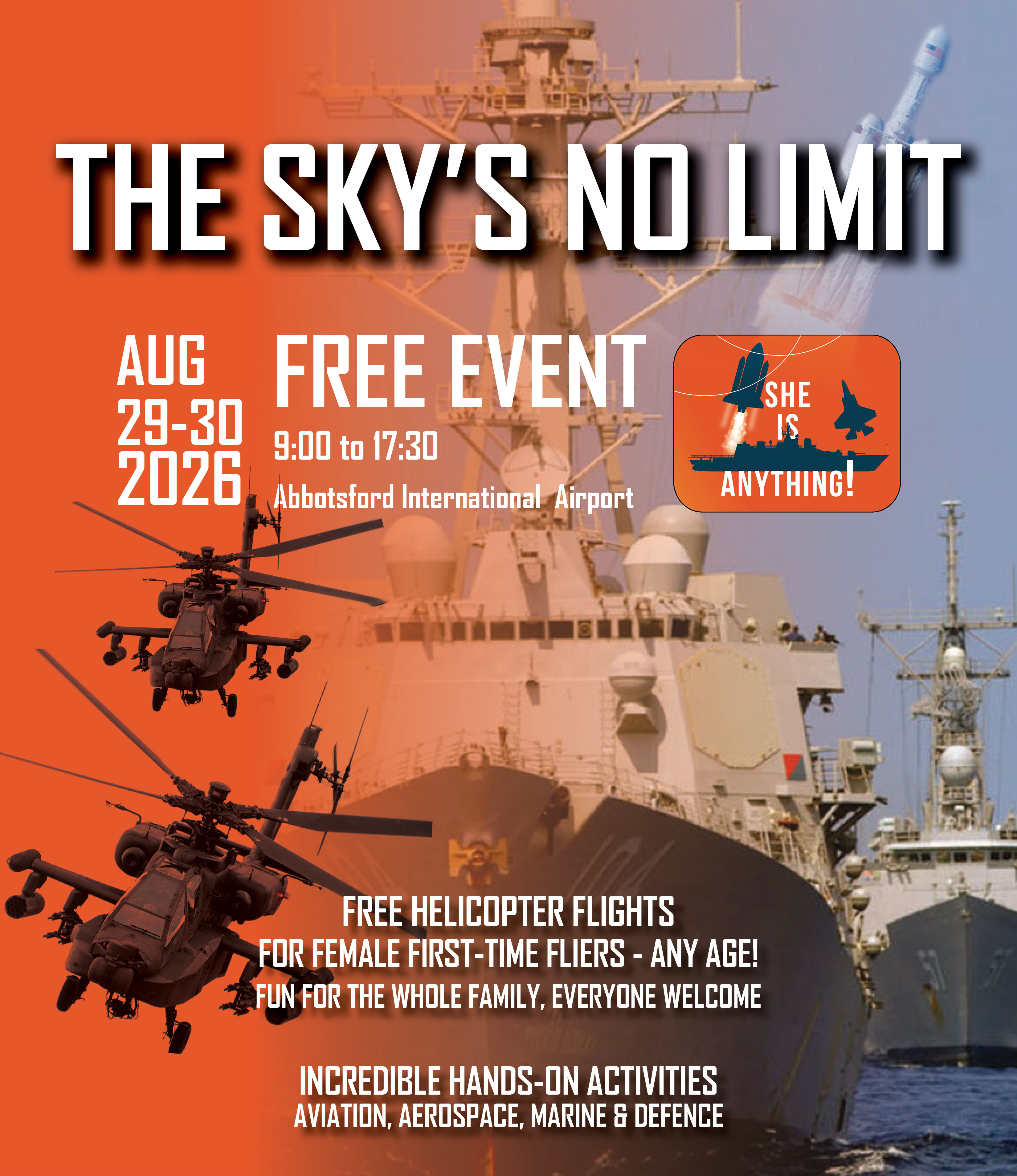 Join us on August 29-30, 2026 at the Abbotsford International Airport in B.C., Canada for the World’s largest Aviation, Aerospace, Marine and Defence outreach event of its kind. This is our signature annual event, where absolutely everyone is welcome – no registration required. The entire event is completely FREE! No registration is required to attend, and parking is also FREE.